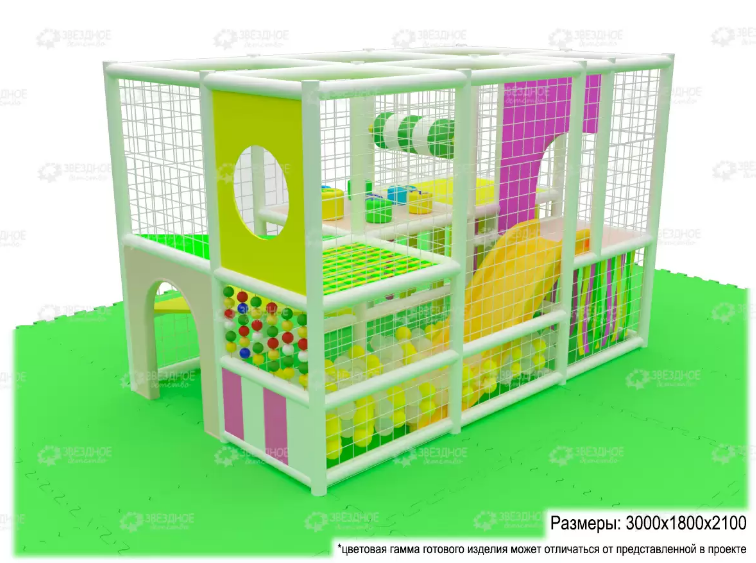 Подробное описание: Игровой лабиринт для самых маленьких. Возраст от 2х лет. Комплектация: Комплект металлокаркаса – 1 шт. Комплект винилового рукава – 1 шт. Комплект сетки игрового лабиринта – 1 шт. Пластиковые хомуты/нить лавсановая – 1 компл. Сетка-лаз без окна – 1 шт. Набор тонких груш– 1 комплект Плитки пола – 6 шт. Иллюминатор – 1шт. Шарики для сухого бассейна- 800 шт. Штора защитная из шариков 1,0- 1шт. Мат 2-го уровня– 1 шт. Мат 2-го уровня узкий – 1 шт. Треугольный мат – 2 шт. Панель – 1 шт. Пенечки Цифры– 1шт. Горка односкатная - 1 шт. Баннеры – 1 комплект. Арка на фанере1,0 – 2 шт. Панель под иллюминатор 1,0-1 шт. Защитные шторы – 4 шт.