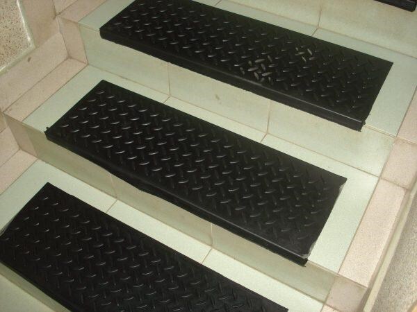 Резиновая накладка на ступени Елочка Резиновые накладки на супени Елочка препятствуют скольжению на мокрых и обледенелых ступенях, эффективно убирают грязь с обуви посетителей. Область применения таких противоскользящих покрытий крайне широка - против скольжения, для коммерческие лестниц, для крытых лестниц, для открытых лестничных маршей. Резиновые накладки на ступени отличаются своей прочности и износостойкости, и сохраняют свои противоскользящие свойства в широком диапазоне температур, включая минусовые до -50С. Материал не выделяет вредные вещества, не боится влаги, солнечного ультрафиолета, масел и бытовой химии. Они прекрасно защищают от грязи, легко чистятся, моются и долговечны. При мойке допускается использование любых моющих средств. Эти коврики, достаточно легкие и их просто уложить на поверхности! Для более прочной установки, можно приобрести самоклеющиеся коврики на ступеньки. Размер: 300х750 мм Толщина: 2,5 мм Материал: 100% резина Вес м2: 1,1 кг Цена указана за 1 м2.